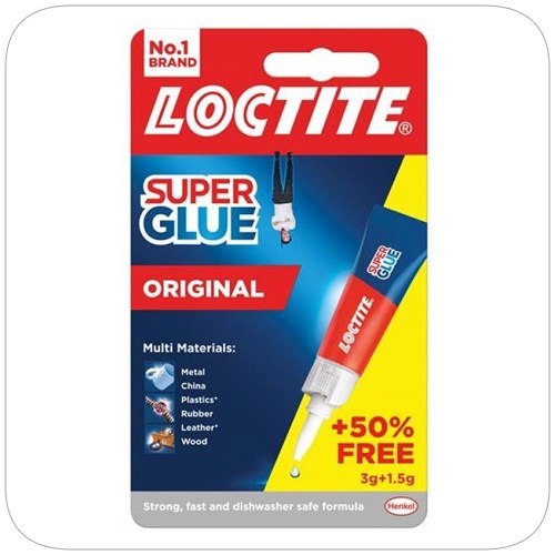 Loctite Super Glue is designed as a super strong adhesive with a long nozzle for precision use and can be used on a range of materials from china, metal, wood, rubber and leather.
