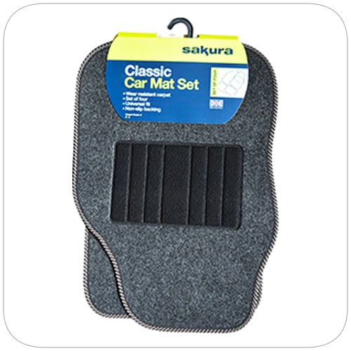 A Sakura Brand Four piece Carpet Mat set with a silver trimming outline.